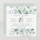 Den här inbjudan med fyrkantiga bröllop innehåller färgade eucalyptus, botaniska gröntar och ljusblå löv med namn gått med med en grönt vattenfärgseucalyptus ampersand.