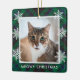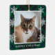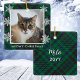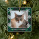 Elegant Grönt Gingham Cat Photo Meowy jul Julgransprydnad Keramik