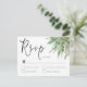 Ett bra sätt för gästerna att få OSA på inbjudningarna är genom vykort med dina adress-uppgifter redan där, så att de kan fylla på framsidan och skicka tillbaka den till dig. Den här designen har en blomning av söt eucalyptus löv i grönt med ett pekfinger av guld från det övre hörnet av högerna och en snyggt-angiven skripttypografi för huvud-Osa till den lämnat. Resten av texten som du enkelt kan anpassa, liksom returadressen på andra sidan. Gröntens bakgrund färg på baksidan kan ändras till ett annat färg om du vill genom att anpassa ytterligare alternativ.