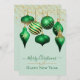 Det här helgdag i elegant har vackra julprydnader i grönt och guld med guld ljus på mjuk grönt. Texten "God jul och Gott nytt år" på framsidan och hälsning och namn i familjen kan lätt ändras genom att klicka på "Personalisera". Perfekt för julhelgen.