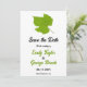 Den här eleganten faller bröllopet, förutom datumet då inbjudan är perfekt för ett modernt höstbröllop. Den enkla designen har grönt höst löv med elegant svart och grönt typografi på vit bakgrund.