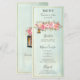 Den här elegant gröntens vattenfärgsmeny ro guld-blommigt innehåller roliga lanternor och strängar ljus och modern korall, ro guld och rosa peonier och andra blommor i en grönt vattenfärgsbakgrund med guld gräns. Enkel att anpassa med din egen information om bröllopsmottagningsmenyn.