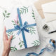 Elegant Grönt Löv Wrapping Papper on White Presentpapper