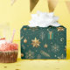 Elegantens grönt och guld julomslutning papper med stjärnor, snöflingor och presenter mönster. Perfekt för helgdag presentförpackning, som ger Julklapp en lyxande och festlig beröring.