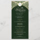 Det här bröllopsprogrammet har en bakgrundsbild av rikens grönt, som är försedd med golden-golddammens golvbeläggning och skapar ett lyxigt och tidlöst stil. En dekorativ vapensköld sitter högst upp, medan den centrala layouten lyfter fram parets namn och alla uppgifter om bröllop-tjänster i ett förfinat och organiserat format. Eleganten grönt och guld har en sofistikerad och regal utformning och skapar detta programkort som en perfekt för formellt, traditionellt och kvällsfritt bröllop.