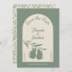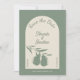 Fira kärlek med tidlös sofistikering med hjälp av vår Elegant Grönt Pear Bröllop spara datum. Med ett känsligt, ritat päron- och bladmotiv i mjuk grönt på en varm gräddbakgrund fångar denna utformning perfekt naturskönhetens charm och den förfinade enkelheten. Inbjudan visar en klassisk botanisk känsla - perfekt för elegant, rustik, trädgård eller bröllop på landsbygden. Den subtila vintagen stil och den fina layouten gör den till en underbar keepy för dina gäster.