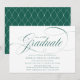 Inbjudningar till studentfest av elegant som innehåller "Student" i ett modernt kalligrafiskt skript för grönt. Anpassa inbjudningarna till studentfesten i grönt genom att lägga till uppgifter om student namn, studenten, namn och studentfest. Inbjudningskorten för studentfest av trendig går tillbaka till visning av ett vitt trellis mönster med grönt bakgrund.