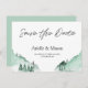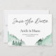 Grönt av elegant Skog med vattenfärgat berg och barrträd träd i skuggor av perfekt av dammig grönt för roliga vinter- eller skogsområden. Anpassa den text och information som visas på detta kort för att skapa en unik inbjudan till elegant.