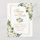 Modern Elegant, Vit Blommigt för vattenfärgsvit Grönt, Guld Spara postkort för Förlovningen Datum