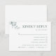 Elegant och minsta vita och blå stil-OSA kort med möjlighet att lägga till eller inte välja måltider. Utformning med contemporary, modern blå typografi och subtila, handritade, botaniska detaljer. Om du hellre vill ha den här OSA kort utan måltider raderar du bara alla tecken från en textruta med måltider och användor den sista textrutan för mall för att lägga till ett meddelande som du vill (d.v.s. "Hoppas att du klarar det, inte väntar på att se dig där") eller ditt namn och din händelse. En del av vår insamling "Modern Elegant Typography Blue Bröllop" med olika samordningsprodukter tillgängliga, inklusive kuvert för OSA. Besök hela samlingen på: https://www.zazzle.com/collections/modern_elegant_typography_blue_wedding_collection-119316758339581837