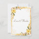 Denna bröllopsdusch tackkort har en varm och elegant design med ömtåliga gula blommor och mjuk grönska som ramar in kortet. Vattenfärgblommorna och subtila botaniska detaljer ger det en lätt och romantisk känsla, medan den gyllene ramen lägger till en mjuk touch av förfining utan att kännas formell eller tung. Layouten är ren och luftig och lämnar gott om utrymme för ditt hjärtliga meddelande att lysa igenom. Perfekt för vår- eller sommarfiranden, känns denna design glad, graciös och tidlös. Ett vackert sätt att tacka nära och kära för att de delade en så meningsfull stund.