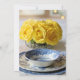 Denna eleganta inbjudan har en gul marmorerad bakgrund med inramad bild av finare dukning och gula rosor. Det finns många användningsområden för denna inbjudan eftersom den är helt anpassningsbar. Den skulle vara perfekt för en mängd olika speciella tillfällen; födelsedag, årsdag, bröllopsevenemang och mer.