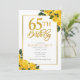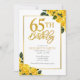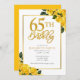 Fira en 65e födelsedag i stil med den här eleganten gul ros-temade inbjudan. Den här inbjudan är en perfekt för att skapar en milstolpe-kalender i extra med glitter-inspirerad guld och ett elegant guld ram. Helt anpassade kan du enkelt redigera information som namn, datum, tid, plats och OSA för att skapa en beröring av personligen. Den här designen är sofistikerad och charm och skapar den som ett utmärkt val för evenemanget.