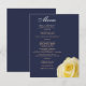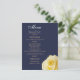 Elegant Gul ros Flower Blommigt Bröllop Menu. En elegant-meny med ett vackert gul ros. Bakgrunden är mörk midnattblått. Trendiget är ett skript. Du kan enkelt anpassa all text - anpassa den med namn, bröllop-datum och menyn bröllop. Den här menyn följer med andra objekt i Gul ros Midnight Blue bröllop-samlingen - du hittar det under inbjudan.