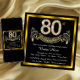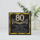 80-års inbjudan med guld diamant siffror och banderoll på en svart och guld bakgrund. Denna vackra svarta och gyllene 80-års inbjudan kan enkelt anpassas för ditt evenemang. Du kan ändra bakgrundsfärgen. Denna slående design fungerar bra för både män och kvinnor. Detta är en tryckt design utan riktiga diamanter, silver, glitter etc.