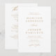 Elegant, allt-i-ett-bröllopsinbjudningar som innehåller information om ceremonin i namn och bröllop på framsidan i guld-brev med vit bakgrund. Ett modernt kalligrafiskript kompletterar den här chicen guld bröllopsinbjudan. Anpassa baksidan av kalligrafinbjudningarna till bröllopet med bröllop-uppgifter som mottagningsinformation, hotellrum, OSA och bröllop webbplats. Lägg till den önskade webbplatslänken för bröllop till den angivna QR-kodmallen så att dina gäster enkelt kan OSA online och visa ytterligare bröllop-information. Den här inbjudan till QR-kodbröllop i guld är perfekt för både formell och avslappnad bröllop under vilken säsong som helst.