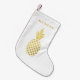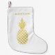 Denna glam stilfulla julstrumpa presenterar en tropisk ananas i fauxguld på en vitbakgrund. Personifiera med ditt namn, i att matcha text.