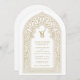 Fira kärlek med tidlös elegans. Den här bröllopsinbjudan från guld och det vita Arabesque innehåller en fantastisk prydnadsdesign inspirerad av traditionellt arabiskt och islamiskt mönster. Den invecklade Arabesque lattice i paletten guld färg skapar en lyxig, regal känsla, perfekt för par tittar för en bröllopsinbjudan som blandar sofistikering med kulturskönhet. Den här inbjudan är tryckt (eller tillgänglig som en digital mall) och passar perfekt för muslimskt bröllop, elegant och lyx firande. Ange tonen för din oförglömliga dag med den här ornitade bröllopsinbjudan från guld Arabesque, där tradition möter modern elegans.