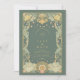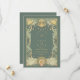 En lyxig besparing av datumkortet med intrikat Art nouveau blommigt ramar i mjuk guld mot djup grönt. Kortet är förskönat med känsliga vindruvor, blommar och vintage och anger tonen för ett tidlöst och romantiskt bröllop firande med klassisk stil och sofistikering.