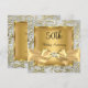 50-års bröllopsjubileum inbjudan. Elegant gulddiamantbåge och blomsterkrulldesign. Observera: Alla platta bilder! De har inte riktiga ädelstenar!