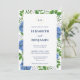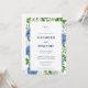 Elegant Guld Blå Hortensia Monogram Bröllop Inbjudningar