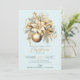 Elegant, klassisk, lyxfri guld och ljusblå juldesign med guld julbalk och guld blommigt inslag.