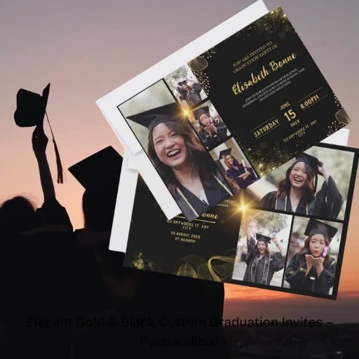 Elegant Guld & Black Anpassningsbar Studenten Inbj Inbjudningar