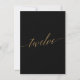 Detta elegant guld och det svarta bord tolv bordsnumret är perfekt för ett enkelt bröllop. Neutraltens utformning har ett minimalistiskt kort som är dekorerat med romantisk och vismisk faux-folie guld typografi. Kortet skrivs ut på framsidan och baksidan (dubblan). Andra bordsnummer i samlingen säljs separat. Obs! Den här designen har inte äkta guld-folie. Det är en grafik av hög kvalitet som framställs som guld-folie.