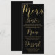 Öka din bröllop-matupplevelse med elegant bröllop-menyn. Storfaux guld moderna kalligrafi på svart bakgrund. Anpassa med egen information.