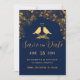 Elegant guld blommig fågel marinblå anpassad bild spara datumet