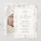 Elegant Guld Blommigt Botaniskt baptismfoto Inbjudningar