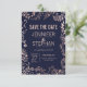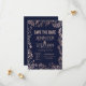 Elegant, modern och chic faux guld och trendig marin blå blommigt hand plockade mönster, ro-the-Date-Spara-kort. Denna klassiska och sofistikerade utformning är perfekt för det trendig och det snyggt som gifter sig. Anpassa med ditt eget meddelande på framsidan och en anpassad inledande monogram på baksidan. All fotoutskriftsdesign.
