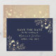 Lägg märke till din stora dag i stil med elegantens blått och guld blommigt spara-datum-kort. Designad med en djup marin bakgrund, ömtåliga botaniska accenter från guld och romantiskt manus, är det perfekt för en tidlös och klassös firande från bröllop. Enkel att anpassa för ditt speciella datum och par namn. Ett underbart första intryck för dina gäster!