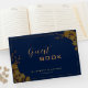 Elegant Guld Blommigt Navy Blue Guestbook Gästböcker