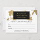 Ett vintage-inspirerat faux guld-blommönster skapar en vacker bakgrund på anpassadets presentcertifikatmall. Ditt namn eller ditt företag namn visas stilistigt i en svart namnskylt med guld-format på framsidan. Perfekt för salonger, boutiques, makeup artists, spas m.fl. Den här produkten ingår i en rad samordnade kontorsmateriel för att hjälpa till att märka ditt företag. Art och design © 1201AM Design Studio | www.1201am.com