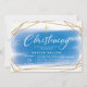Modern, elegant pojke Christening-inbjudan innehåller handskrivet skript "'Christening'" i vitt skript, guld ram , guld kor på blå vattenfärgsbakgrund. Anpassa med detaljer i trendigets versaler.