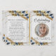 Anpassa det här moderna begravningsprogrammet för elegant med eget foto och egen text för att skapa en speciell hyllning till ditt barn. Ett 'In Loving Memory'-program som innehåller ett blått band med 3d-effekt och ett guld-minnesprogram för accent. På framsidan finns ett foto av din älskade, deras namn, data, minnesplatsen och evenemangets datum. På insidan finns en obituär serviceordning, och på baksidan finns ett tackkort, och på butikens plats finns också andra konstruktioner som erbjuder botaniskt grönt med ro och löv design och glitter/gyllene accents och Eucalyptus foliage för att uppfylla alla krav.