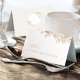 Dessa eleganta moderna bröllopsplatskort har en falsk guld botanisk blomdesign och romantisk skrift och sofistikerad serif-teckensnitt, med parets monogramdesign på baksidan. Perfekt för romantiska trädgårdsbröllop och moderna lyxbröllop.