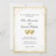 Elegant Guld Hearts-inbjudan designad med guld färgad-hjärtan och konetti-accenter mot vit bakgrund. I texten på framsidan finns: Information om Bride och Groom's Namn, Bröllop datum, tid, plats och mottagning. På baksidan finns information om din OSA i guld-färgaden. Om du vill anpassa dig infogar du bara dina uppgifter i vår enkla mall och ersätter exempeltexten. Se till att du kan visa hela Elegant Guld Bröllop Hearts Collection för matchande kort och tillbehör. Den här inbjudan till Elegant bröllop finns tillgänglig både under Skriv ut och Hämta.