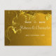En vacker, gyllene bespara vykortet med ett mycket dekorativt guld-mönster av scrollsar runt dammkanten på kant överst och på lämnat sida av kortet. Brevkortet "Elegant Guld Bröllop spara datum" är mycket dekorativt, vilket gör att bröllop säger att era gäster kommer att bli mycket imponerade av. Det är en nod till en mer raffinerad ålder, där sofistikering och romantik härskade. Om du planerar ett bröllop med samma tema i åtanke skulle det här kortet vara mycket lämpligt.