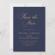 Elegant Navy Blue och Guld Bröllop spara datum. Konstruktionen har en vacker färgad i guld på marinblått. Anpassa med uppgifter om namn och bröllop i Bride och Groom. Baksidan visas i fast marin blått, men det kan vara vilken färg som helst. Vi inbjudan besöker vår Zazzle-butik, Austen & Grace, för att se fullt-svit, matcha produkter med mera. Kontakta oss om du behöver matchande produkter från extra eller någon hjälp.