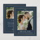 Detta Klassiska Eleganta Guld Bröllopsfoto Tackkort är enkelt och mångsidigt. Det har en chic marinblå och vit design med ett monogram, vertikalt foto, enkel guldram och minimalt redigerbart Tack och namn på framsidan. Baksidan har ett andra horisontellt foto med ett redigerbart personligt meddelande och skriftsignatur. Klicka på redigeringsknappen för att anpassa denna design.