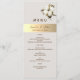 Minimalistisk, elegant, enkel bomull blom- guld bröllopsmeny med modern kalligrafi.