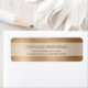 Returetiketterna i eleganten har en guld borstad metall-bakgrund med halvgenomskinlig vit övertäckning. Anpassa dem med ditt namn i mörk grått dekorativt teckensnitt och adress i sans serif.