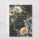 Elegant färg och den geometriska utformningen gör att denna inbjudan blir bedövande. Den här designen har en dramatisk svart bakgrund, en underbar botanisk blommigt ritad skiss och anpassningsbar typografi med ett geometriskt gräns på framsidan. Den omvända sidan har en underbar blommigt av band.