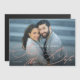 Den här söten sparar datumen med romantiska skript och ett stort foto. Elegant ro guld-kalligrafin läser "Spara datum" och överför ett fullt- och landskapsorienterat foto. Parets namn, bröllop och bröllop är skrivna i vitt.