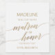 Guld-kalligrafin i elegant är min hedersbetygelse vin är perfekt för ett enkelt bröllop. Neutraltens utformning har en minimalistisk etikett som är dekorerad med romantisk och vismisk faux-folie-typografi av guld. Anpassa vin flaska-märket med namn i hedersbetygelsen, ett kort-budskap och bridens namn. Obs! Den här designen har inte äkta guld-folie. Det är en grafik av hög kvalitet som framställs som guld-folie.