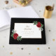 Vackra vattenfärgsprejer med blommigt med vackra rödpeonier, lush greer, eukalyptus och baby andedräkt... omger en rektangel ram med dina detaljer i guld typografi. Ett valfritt bröllop-foto visas på baksidan. Riken och gröntar i blommigtarna ställer in bakgrunden till eleganten svart, vitt och guld. Lägg till ett eget foto och information genom att följa länken "Anpassa detta". Om du vill ha hjälp, tveka inte att nå ut till mig via ett meddelande här på Zazzle eller e-post. susanmingaydesigns@gmail.com