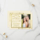 De här vackra datumkorten kommer att ge dina vänner och din familj information om ditt kommande bröllop. De har en färgad av elegant guld och grädde med foto i en gyllene faux foil ram och delikata kurvor och snurrar i hörnen. Det finns utrymme för en kalender för anpassadet i din bröllop-månad med ett hjärta runt din speciella dag. Finare, snyggt, posh och glam, de här korten är ett underbart sätt att påbörja resan i bröllop med klass och stil.