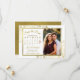 De här vackra datumkorten kommer att ge dina vänner och din familj information om ditt kommande bröllop. De har en elegant guld och vit design med ditt foto i en golden faux foil ram och delikata kurvor och snurrar i hörnen. Det finns utrymme för en kalender för anpassadet i din bröllop-månad med ett hjärta runt din speciella dag. Finare, snyggt, posh och glam, de här korten är ett underbart sätt att påbörja resan i bröllop med klass och stil.